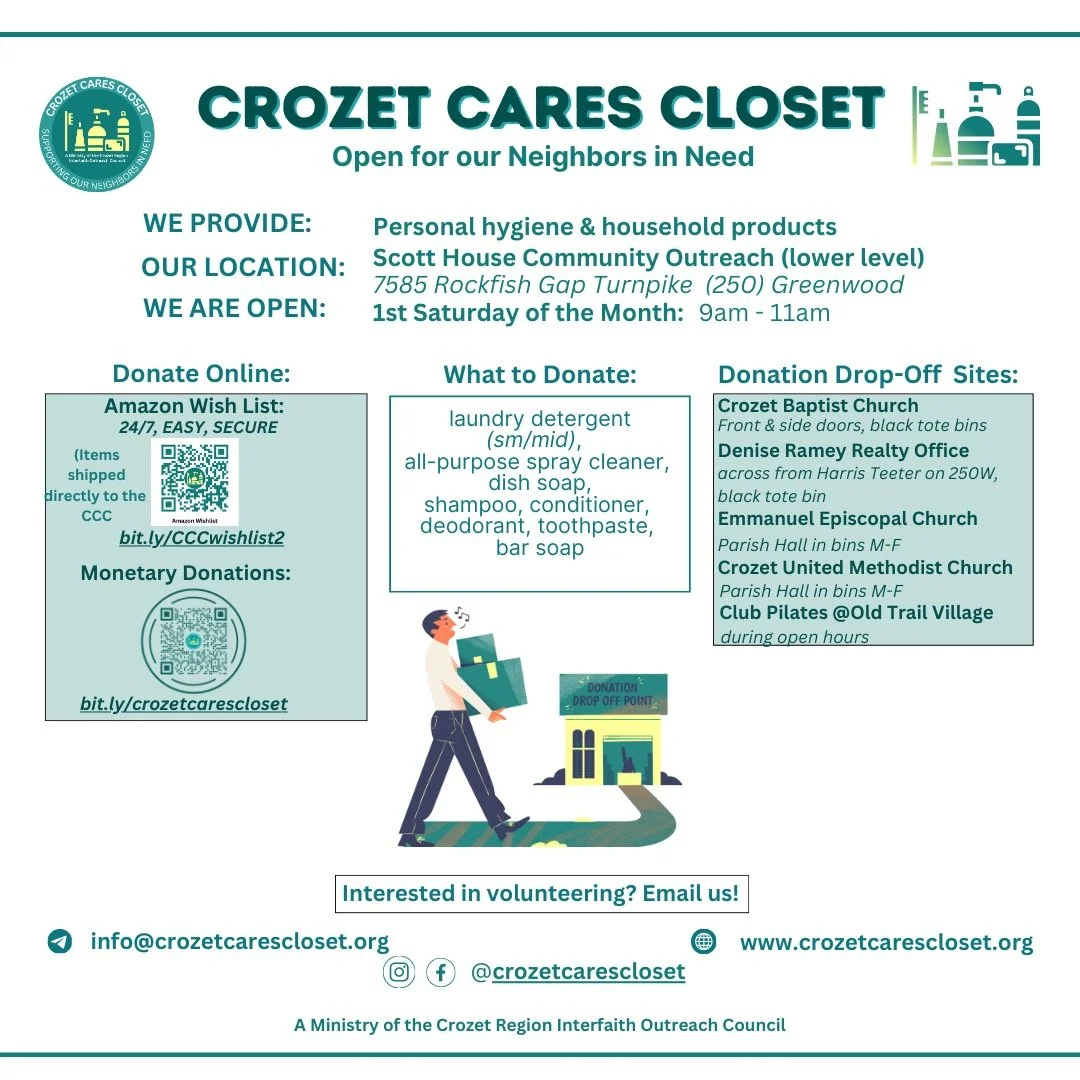 Have questions or want to learn more about Crozet Cares Closet?