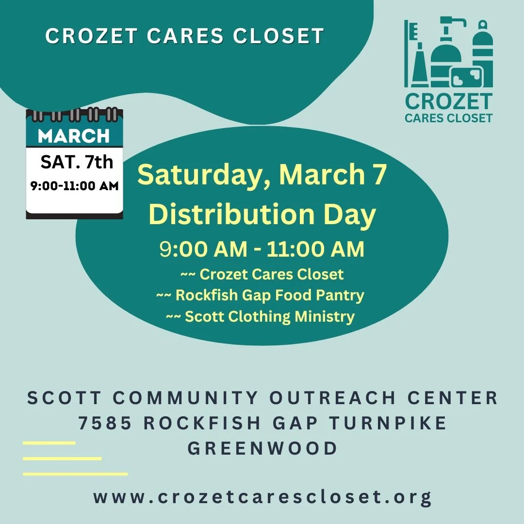 Our Distribution Days are on the 1st Saturday of the month from 9-11 AM . We provide these products to our neighbors in need in Western Albemarle and nearby counties.